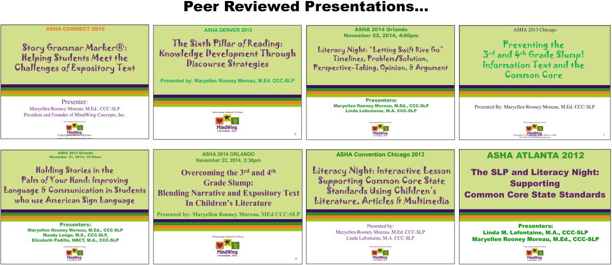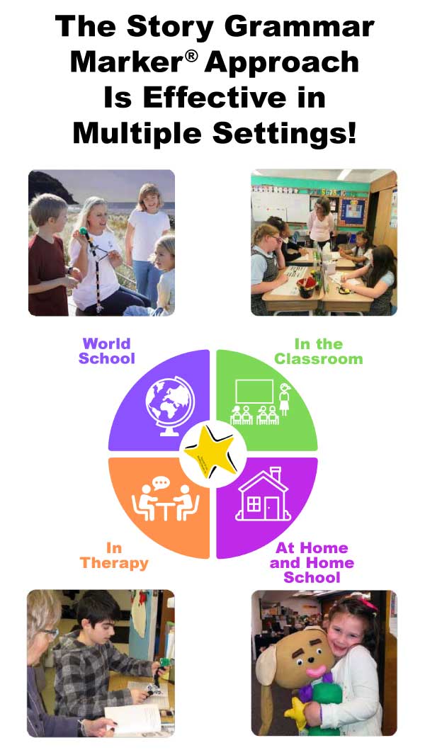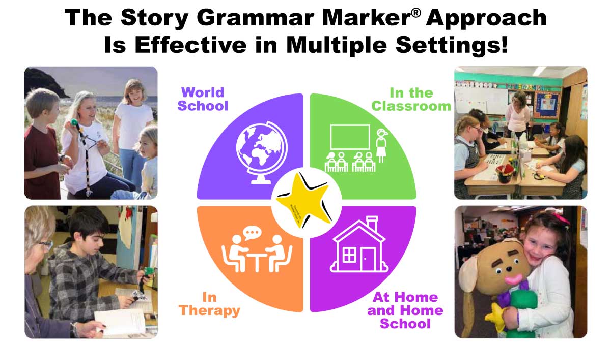 Join thousands of educators, parents, and other professionals in implementing the Story Grammar Marker® Approach with our virtual courses, onsite workshops, coaching, and hands-on instructional materials!